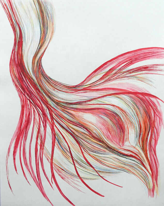 Filomena Borecká’s work deals with intangible themes such as breath, relationships and the passage of time. She uses dynamic drawings and sculptural objects with abstract organic forms to capture the flow of creative energy, the constant spontaneous movement inherent in the pulsations of nature, biological rhythms and cosmic events. Borecká was introduced to a wider audience at the exhibition Breath of Silent Thoughts (2024), organized by the National Gallery in Prague. There, Borecká presented her large-scale abstract drawings and installations that emphasized themes of togetherness and reciprocity. Her multimedia installation Phrenos – The Bank of Breath (2011-present) emphasizes the deep interconnectedness of all living things. Since 1998 she has lived in Paris, where she enriches her work with diverse cultural influences.